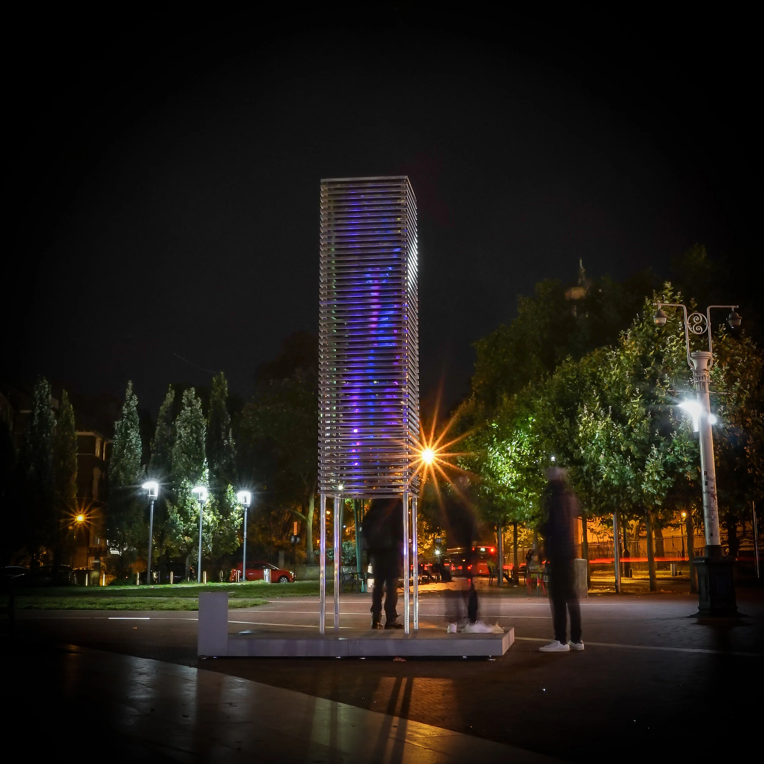Originally located in Brixton, its found a new home in London Central Mosque where the public and visitors will be greeted by the reflective structure that takes the traditional concept of a minaret and flips it; replacing the vocal call to a visual call in bringing a community together.